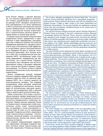 Современная геополитическая обстановка в Арктике, включая милитаризацию региона, выход Западного мира из совместных научных и экологических инициатив, противоречат изначальной концепции поддержания устойчивого развития и сотрудничества в Арктике.