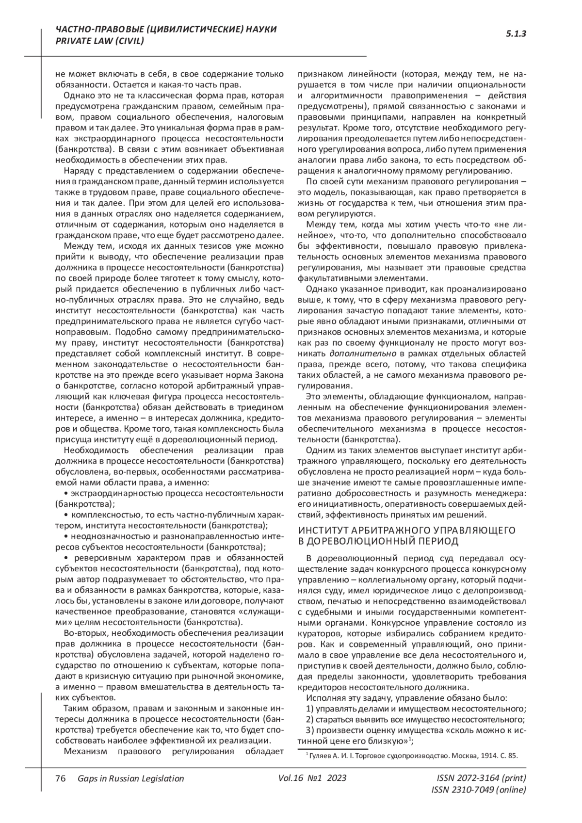 Однако это не та классическая форма прав, которая предусмотрена гражданским правом, семейным правом, правом социального обеспечения, налоговым правом и так далее. Это уникальная форма прав в рамках экстраординарного процесса несостоятельности (банкротства). В связи с этим возникает объективная необходимость в обеспечении этих прав. Наряду с представлением о содержании обеспечения в гражданском праве, данный термин используется также в трудовом праве, праве социального обеспечения и так далее. При этом для целей его использования в данных отраслях оно наделяется содержанием, отличным от содержания, которым оно наделяется в гражданском праве, что еще будет рассмотрено далее.