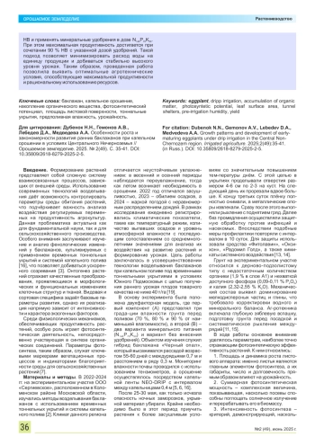 Ключевые фразы: баклажан, капельное орошение, накопление органического вещества, фотосинтетический потенциал, площадь листовой поверхности, тоннельные shelters, pre-irrigation humidity, yield укрытия, предполивная влажность, урожайность