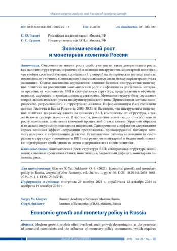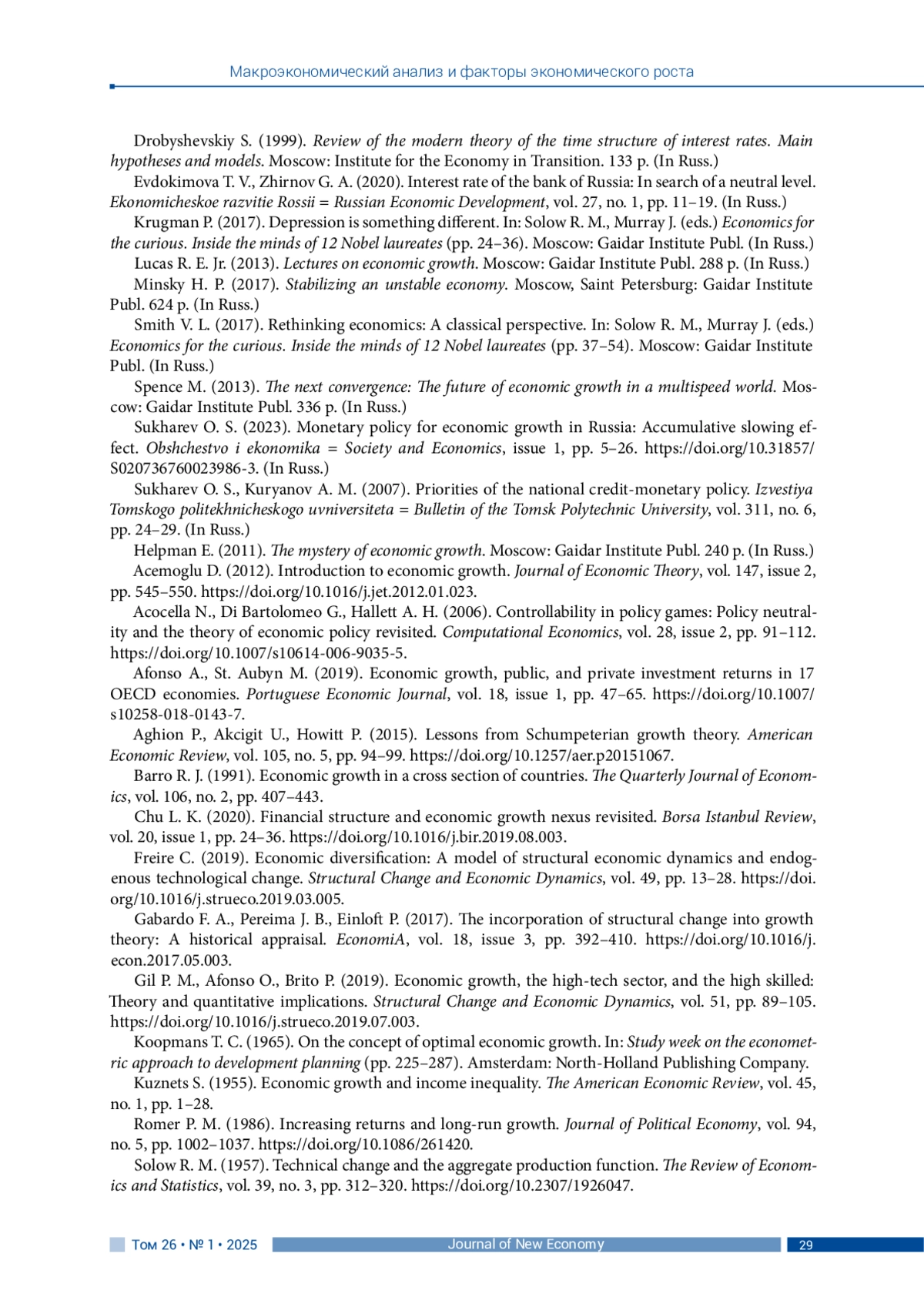 15. Сухарев О. С. (2023). Денежно-кредитная политика экономического роста в России: тормозящий накопительный эффект // Общество и экономика. C. 5-26. EDN: XYFQGV