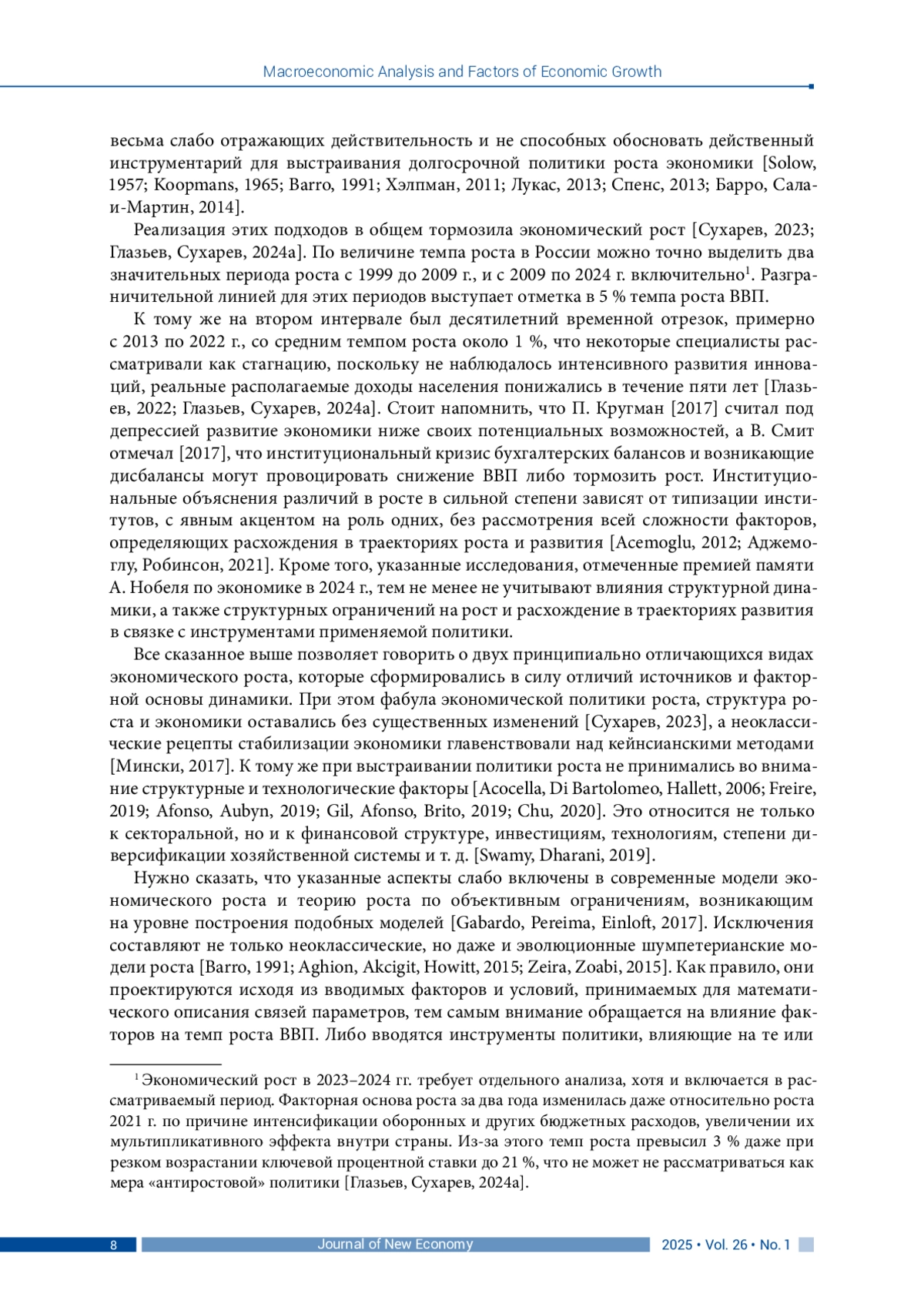 7. Глазьев С. Ю., Сухарев О. С. (2024b). Экономический рост России и структурная модернизация: проектный подход // Российский экономический журнал. № 2. С. 4-30. EDN: YETAOG