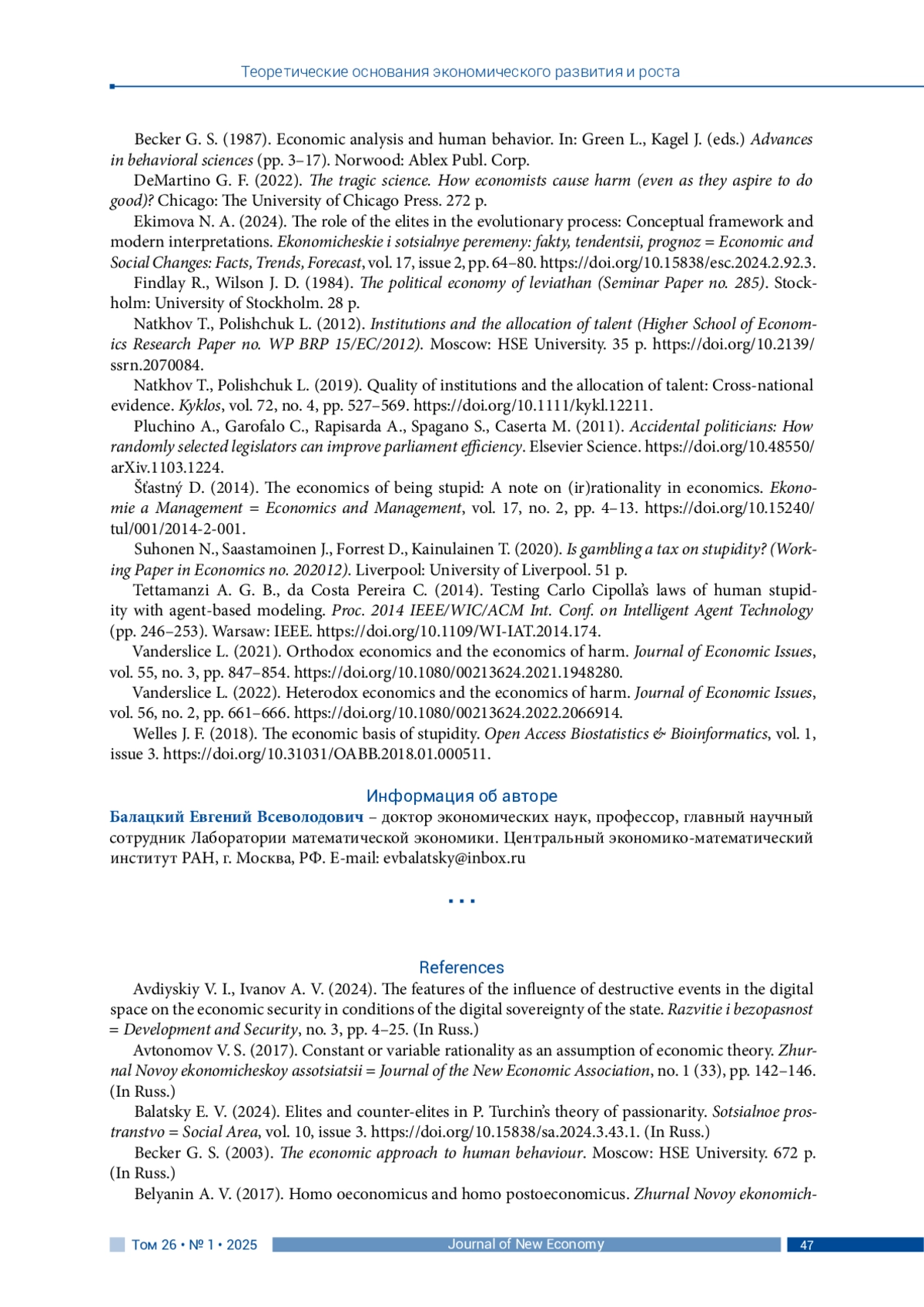 7. Капелюшников Р. И. (2017). Статус принципа рациональности в экономической теории: прошлое и настоящее // Журнал Новой экономической ассоциации. № 1 (33). С. 162-166. EDN: YLYLBN