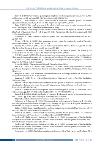 29. Romer P. M. (1987). Growth based on increasing returns due to specialization. The American Economic Review, vol. 77, no. 2, pp. 56-62. DOI: 10.2307/1805429