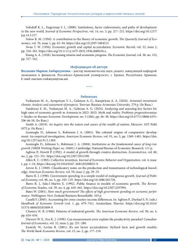 2. Сандоян Э. М., Восканян М. А., Галстян А. Г. (2024). Анализ и оценка ключевых факторов высоких темпов экономического роста в Армении в 2022-2023 годах: миф и реальность // Проблемы прогнозирования. № 5 (206). С. 46-58.