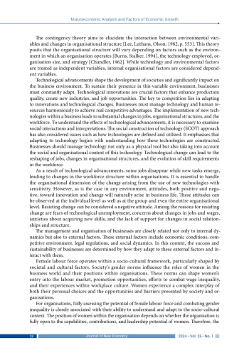 Technology has profound effects on labour market dynamics. Numerous studies have highlighted the unique opportunities and challenges that technological change presents to specific demographic groups. The aim of the study is to examine the long-term impact of technological changes within organisations on female unemployment at a macro level. From the perspective of the contingency approach and economic growth theories, the research conducts a panel cointegration analysis employing CCE-MG and AMG long-term panel cointegration estimators. The data on the female unemployment rate, the percentage of R&D expenditure in GDP and the ICT patents in total patents in the G7 countries for 1985–2020 is sourced from the OECD statistics. The analysis indicates the presence of an effect of technological change on the female unemployment rate as well as the national variations in their relationship. In particular, in three countries out of seven (Germany, the UK, the USA), there is the relationship between technological advancements and female unemployment. For the most part, increases in the percentage of R&D expenditure and ICT patents augment the female unemployment, though in Germany a rise in R&D expenditure leads to a decrease in it. The results will contribute to understanding the impact of technology-driven changes in organisations on gender-based labour inequality. The research highlights the complexity of the impact of technological advancements on the female employment and underscores the need for shaping related government policies by considering each country’s specific conditions