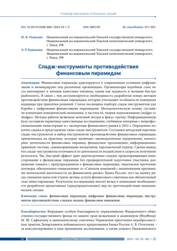Статья: СЛАДЖ-ИНСТРУМЕНТЫ ПРОТИВОДЕЙСТВИЯ ФИНАНСОВЫМ ПИРАМИДАМ (2024)