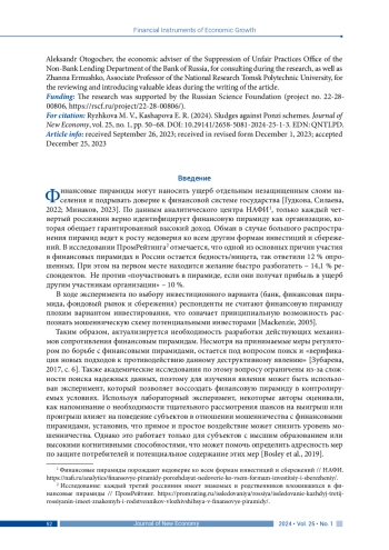 Ключевые фразы: финансовые пирамиды, цифровые финансовые пирамиды, инструменты противодействия, сладжи, наджи, финансовое поведение