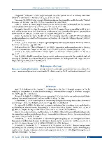 24. Grossman M. (1972). On the concept of health capital and the demand for health. Journal of Political Economy, vol. 80, issue 2, pp. 223-255. DOI: 10.1086/259880