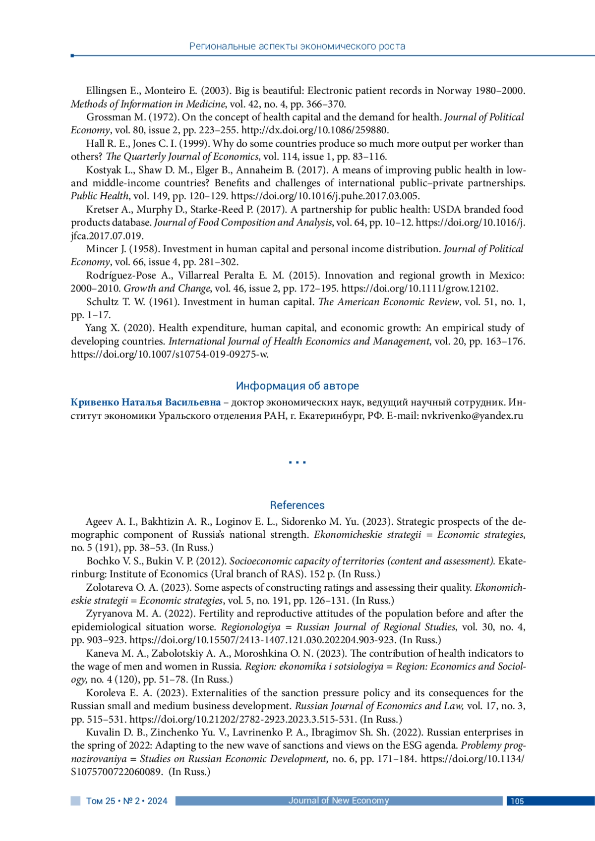 1. Агеев А. И., Бахтизин А. Р., Логинов Е. Л., Сидоренко М. Ю. (2023). Стратегические перспективы демографической составляющей национальной силы России // Экономические стратегии. № 5 (191). С. 38-53. EDN: JGBBIH