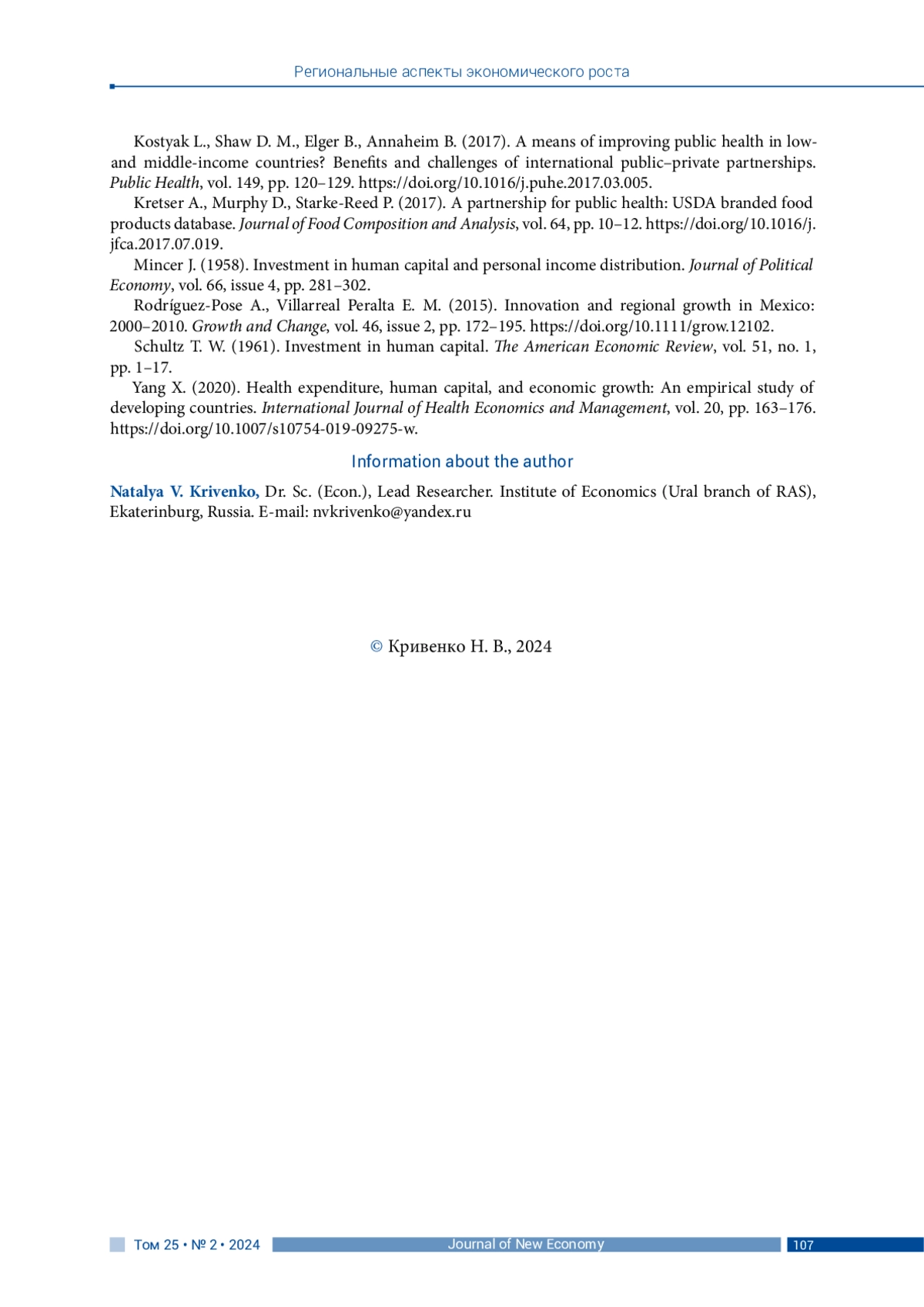 31. Yang X. (2020). Health expenditure, human capital, and economic growth: An empirical study of developing countries. International Journal of Health Economics and Management, vol. 20, pp. 163-176. DOI: 10.1007/s10754-019-09275-w EDN: SFWZUE