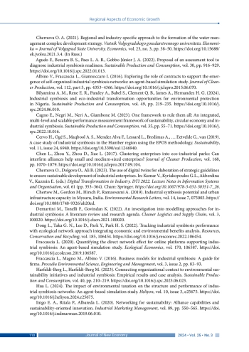 20. Chen L., Zhou Y., Zhou D., Xue L. (2017). Clustering enterprises into eco-industrial parks: Can interfirm alliances help small and medium-sized enterprises? Journal of Cleaner Production, vol. 168, pp. 1070-1079. DOI: 10.1016/j.jclepro.2017.09.104