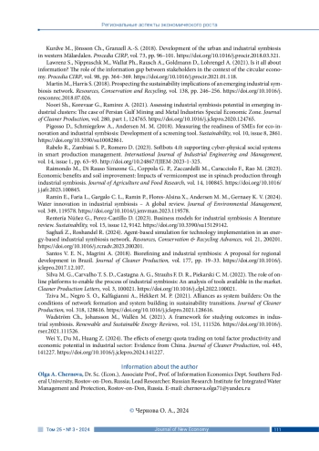 11. Титова Н. Ю. (2021). Промышленный симбиоз в условиях циркулярной экономики // Вестник Астраханского государственного технического университета. Серия: Экономика. № 4. С. 44-50. DOI: 10.24143/2073-5537-2021-4-44-50 EDN: JMOIQG