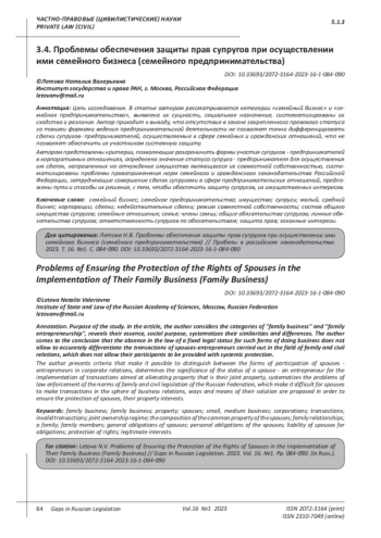 Levushkin A.N. Family matrimonial entrepreneurship and the sale of spouses’ business under the laws of the Russian Federation // Laws of Russia: experience, analysis, practice. 2018. N 4. P. 25. EDN: YXIGJL