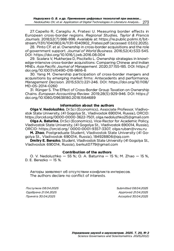 28. Pinto C. F. et al. Ownership in cross-border acquisitions and the role of government support // Journal of World Business. 2016. Vol. 52, iss. 4. P. 533-545. DOI: 10.1016/j.jwb.2016.08.004