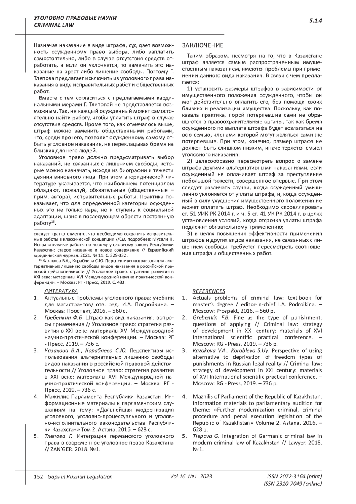 5. Тлепова Г. Интеграция германского уголовного права в современное уголовное право Казахстана // ZAN’GER. 2018. №1.