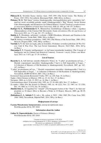 11. Пискунов М. О. «Большая» история Академгородка: историографическое поле и перспективы культуральной истории советских городов науки // Вестник Том. гос. ун-та. 2020. № 459. С. 140-147.