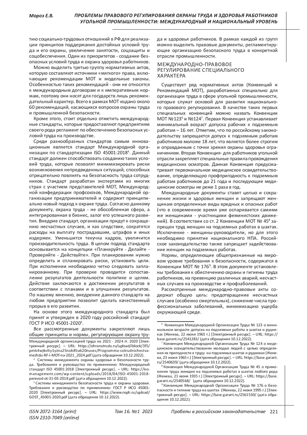 8. Цыганкина Е.А. Международные стандарты в сфере охраны труда // Законность и правопорядок в современном обществе: сборник материалов XVIII Международной научно-практической конференции. Новосибирск: Изд-во ЦРНС, 2014. С. 87-92 [Электронный ресурс]. - URL: https://cyberleninka.ru/article/n/mezhdunarodnye-standarty-v-sfere-ohrany-truda (дата обращения 10.12.2022).