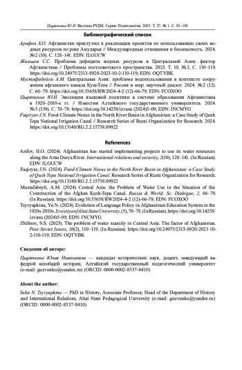 5. Faqiryar J.N. Food-Climate Nexus in the North River Basin in Afghanistan: a Case Study of Qush Tepa National Irrigation Canal // Research Series of Rumi Organization for Research. 2024. DOI: 10.13140/RG.2.2.15738.09922