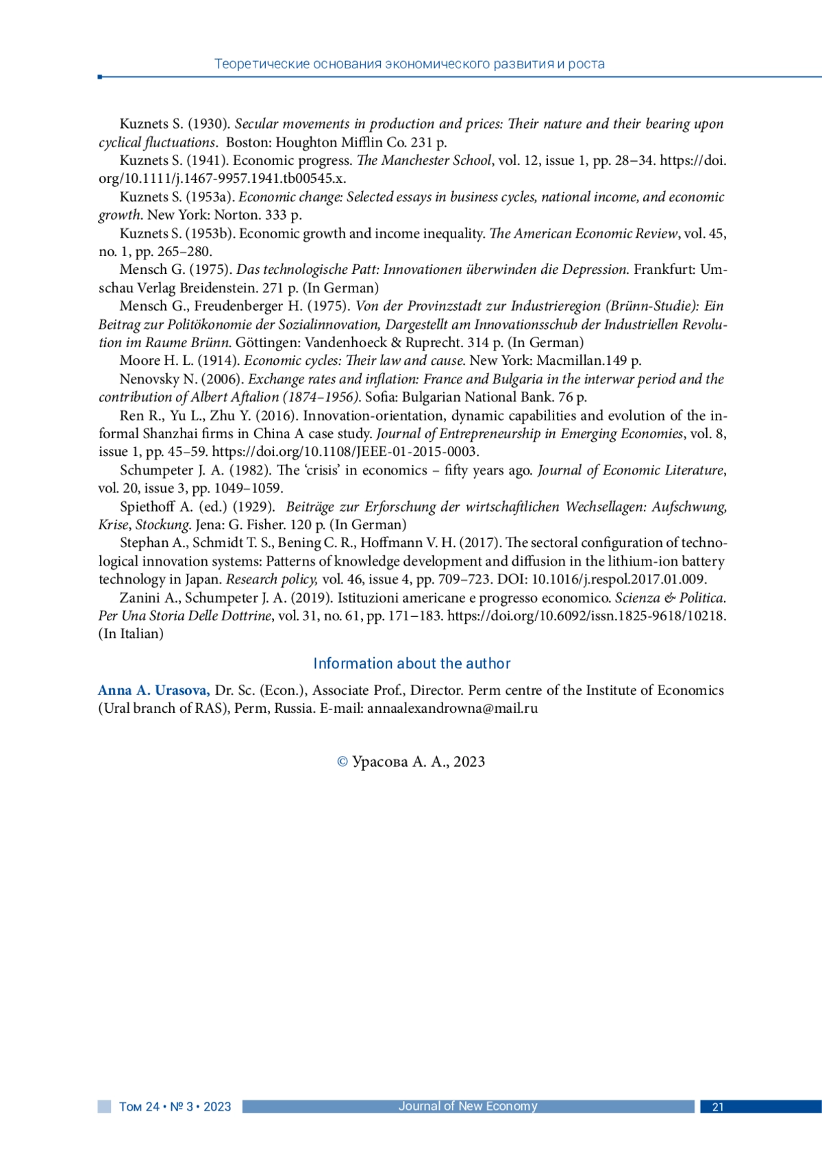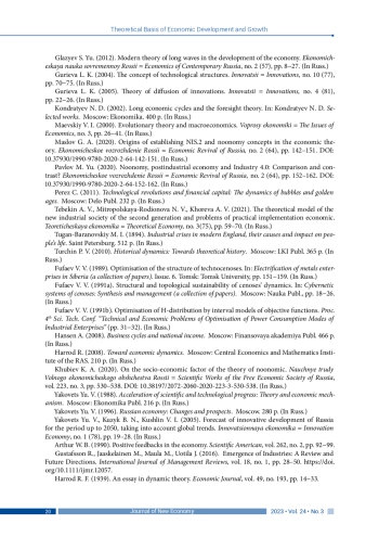 6. Глазьев С. Ю. (2012). Современная теория длинных волн в развитии экономики // Экономическая наука современной России. № 2 (57). С. 8-27. EDN: OZEJDT