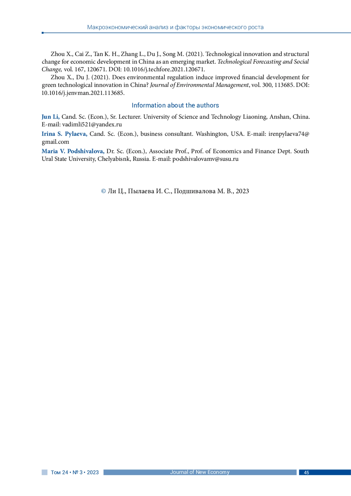 39. Zhou X., Du J. (2021). Does environmental regulation induce improved financial development for green technological innovation in China? Journal of Environmental Management, vol. 300, 113685. DOI: 10.1016/j.jenvman.2021.113685