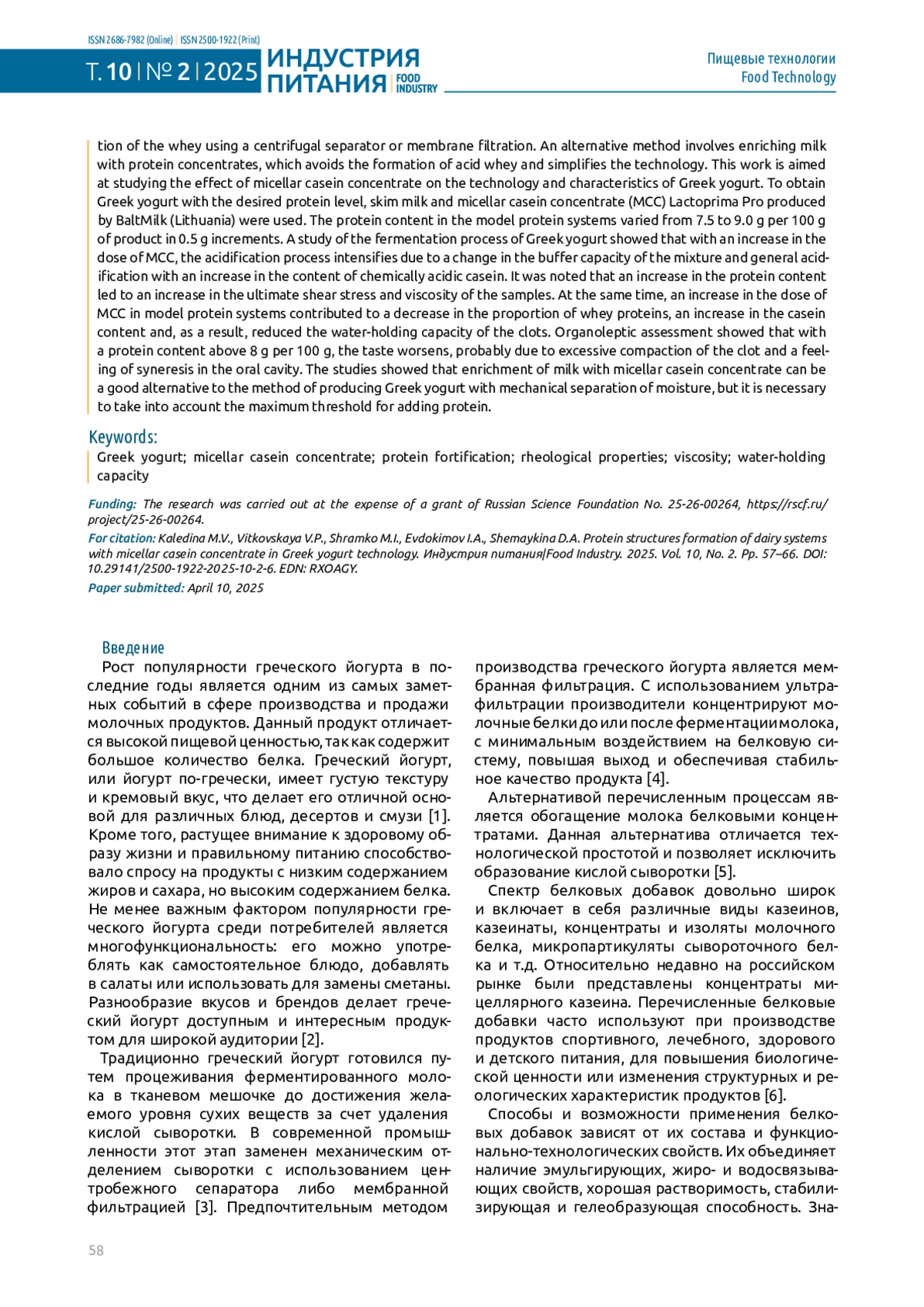 4. Shipulin, V.I.; Dzhangiryan, N.A. Properties of micellar casein and application in food industry. Modern Science and Innovations. 2023. Vol. 1. Pp. 56-64. 10.37493/2307-910X.2023.1.5. DOI: 10.37493/2307-910X.2023.1.5.EDN EDN: PQMCOE