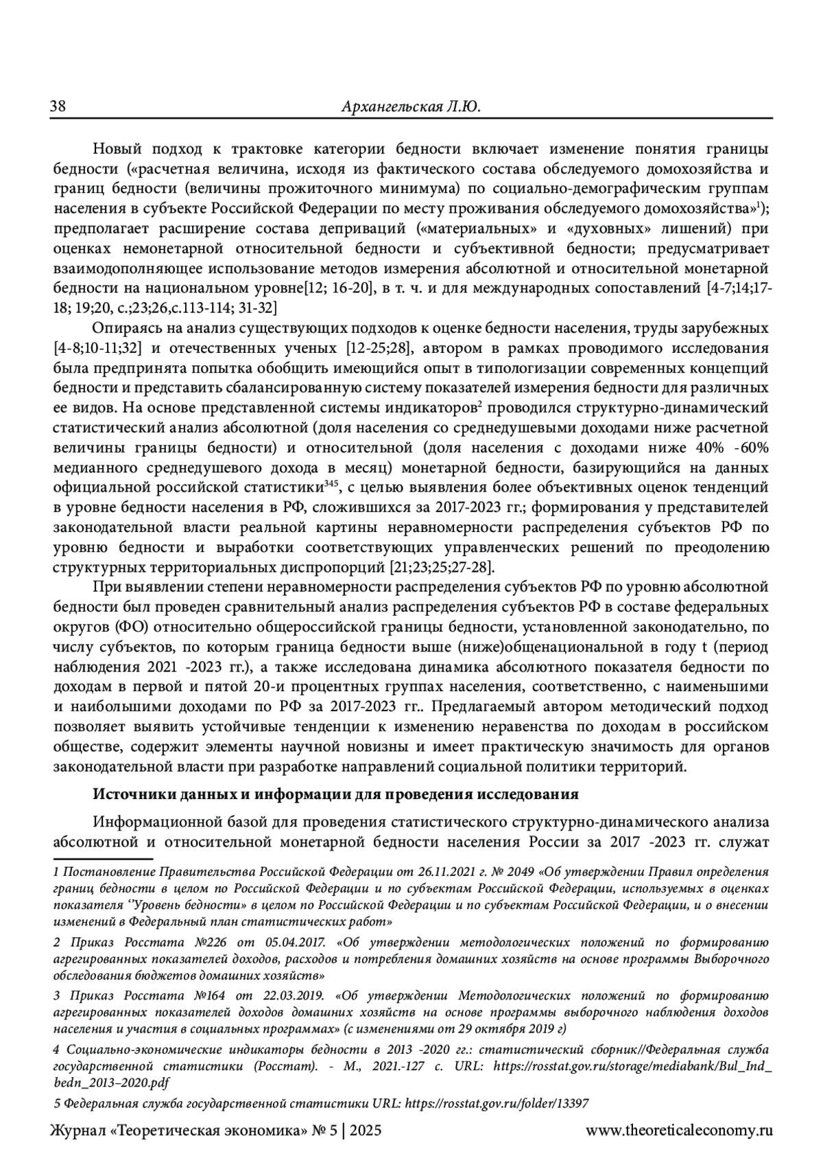 26. Белоусова А. В. Уровень бедности в РФ: пространственный анализ // Вестник Института экономики РАН. 2020. № 4. С. 73-88. EDN: EYYDFG