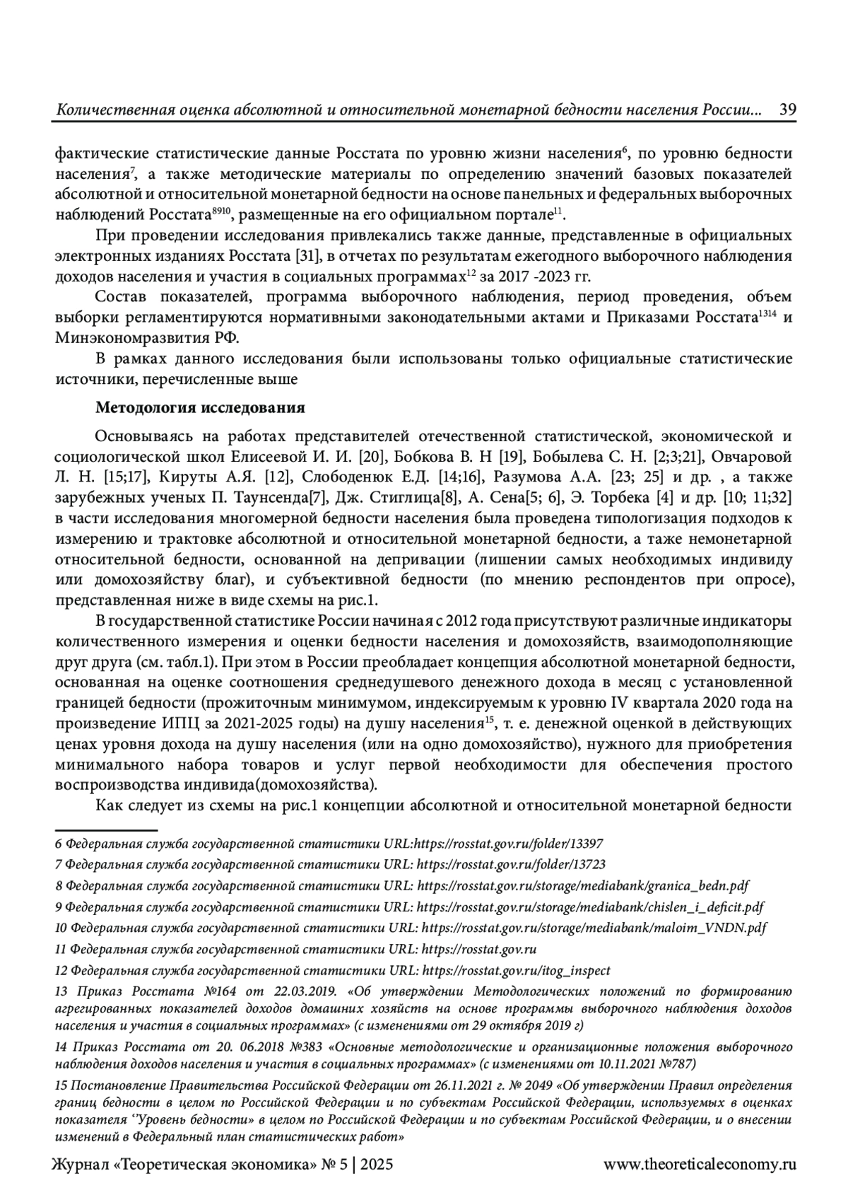 20. Елисеева И. И., Раскина Ю. В. Измерение бедности в России: возможности и ограничения// “Вопросы статистики”, №8, 2017.-с.70-89.