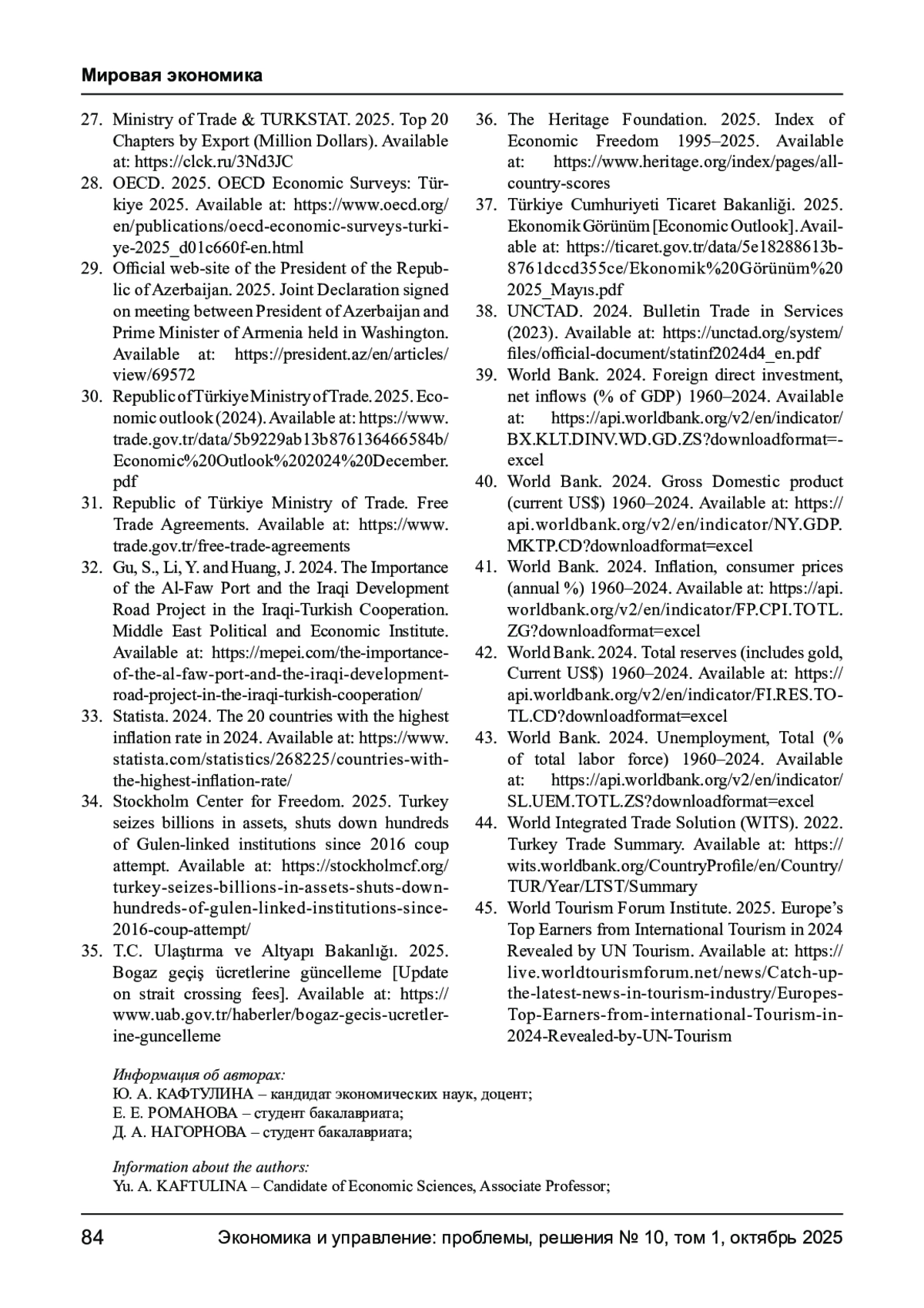 28. OECD Economic Surveys: Türkiye 2025 [Electronic resource] // OECD. - 2025. - URL: https://www.oecd.org/en/publications/oecd-economic-surveys-turkiye-2025_d01c660f-en.html.