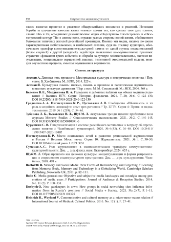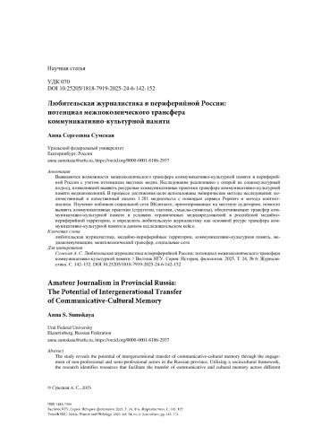 Статья: Любительская журналистика в провинциальной России: потенциал межпоколенческого трансфера коммуникативно-культурной памяти (2025)