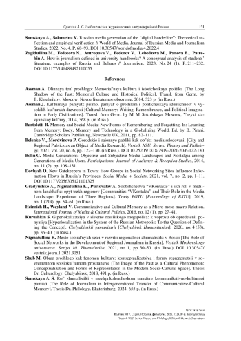Ключевые фразы: любительская журналистика, медийно-периферийные территории, коммуникативно-культурная память, медиакоммуникации, межпоколенческий трансфер, социальные сети