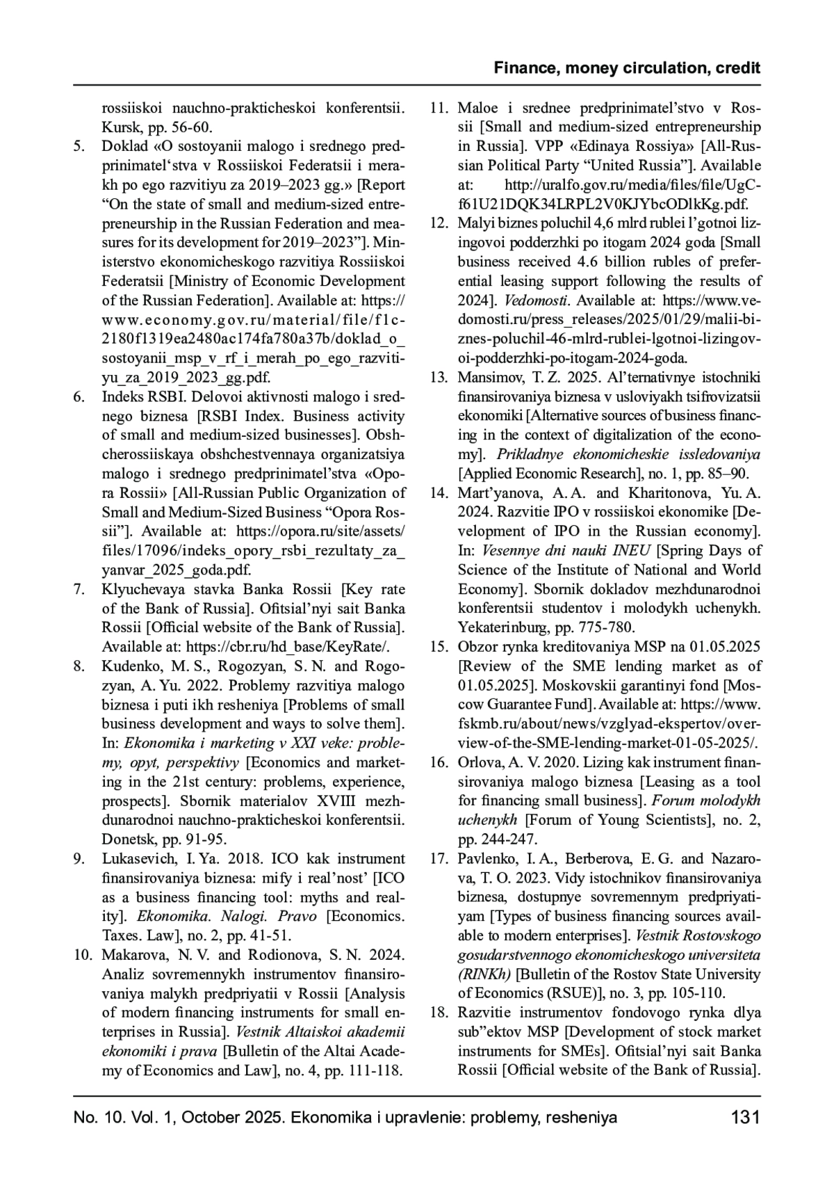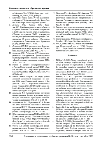 Статья: СОВРЕМЕННЫЕ МОДЕЛИ ФИНАНСИРОВАНИЯ МАЛОГО БИЗНЕСА В УСЛОВИЯХ КРИЗИСА (2025)