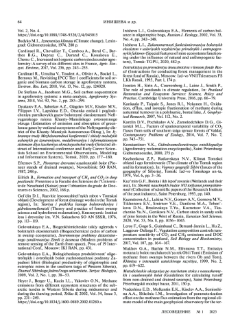 41. Romanovskaya A.A., Korotkov V.N., Polumieva P.D., Trunov A.A., Vertyankina V.Yu., Karaban R.T. Greenhouse gas fluxes and mitigation potential for managed lands in the Russian Federation // Mitigation and Adaptation Strategies for Global Change. 2020. V. 25. № 4. P. 661. EDN: GBAAFS