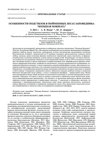 39. Ушакова Г.И. Особенности формирования и трансформации подстилки в лесных биогеоценозах Хибин // Почвоведение. 1999. № 12. С. 1463–1469. EDN: LFLIIL