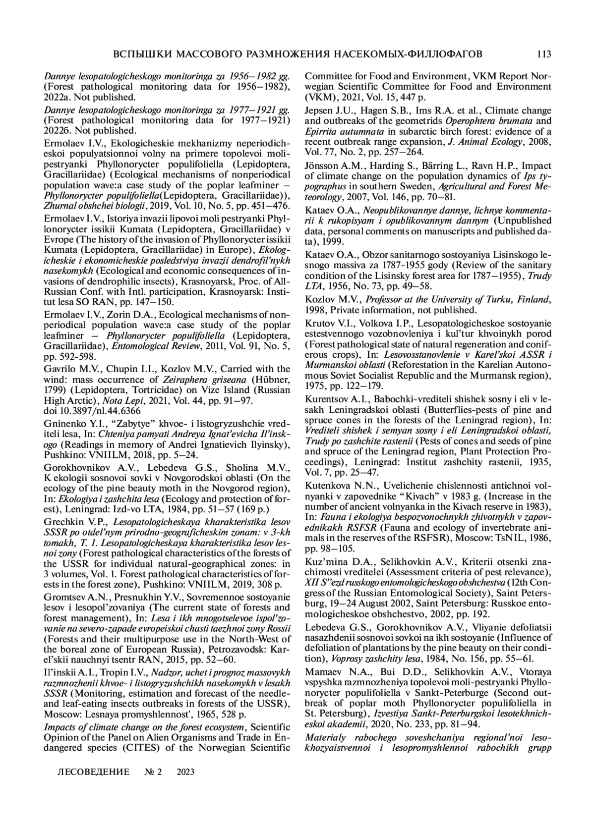 52. Селиховкин А.В., Мандельштам М.Ю., Поповичев Б.Г., Алексеев А.С. Роль вредителей в изменении состояния лесов на северо-западе европейской части России // Лесоведение. 2022в. № 5 (в печати).