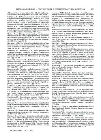 16. Мартынов А.Н. Зависимость биометрических показателей сосны от площади питания // Лесоведение. 1976. № 5. С. 85–88.