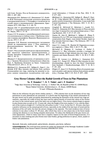 26. McCarroll D., Pettigrew E., Luckman A., Guibal F., Edouard J.-L. Blue reflectance provides a surrogate for latewood density of high-latitude pine tree rings // Arctic, Antarctic and Alpine Research. 2002. V. 34. № 4. P. 450–453.