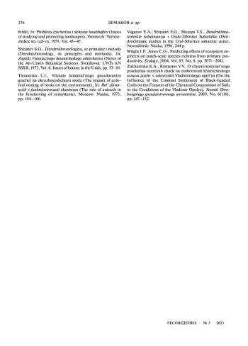 1. Ардамацкая Т.Б. Влияние массовых колоний птиц на растительность и животное население о. Орлова // Структура и функционально-биогеоценотическая роль животного населения суши. М.: Наука, 1967. С. 113-114.