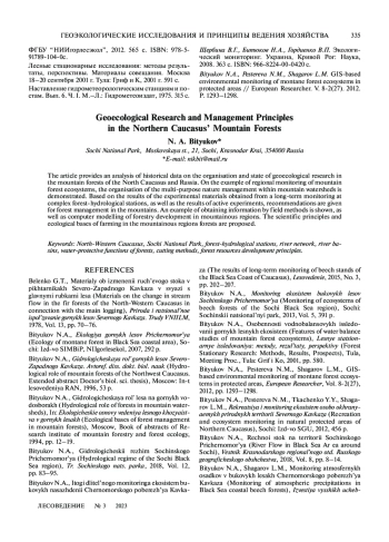 2. Битюков Н.А. Водный баланс водосборов в связи с рубками в буковых лесах Северо-Западного Кавказа // Лесоведение. 1988. № 3. С. 56–65.