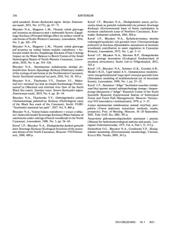 7. Битюков Н.А. Мониторинг экосистем буковых лесов Сочинского Причерноморья. Вып. 5. Сочи: Сочинский национальный парк, 2013. 391 с. 978589-204-228-4. ISBN: 978-5-89204-228-4