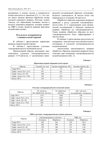 Воздействие плазмы коронного разряда на окислительно-восстановительные процессы в почве