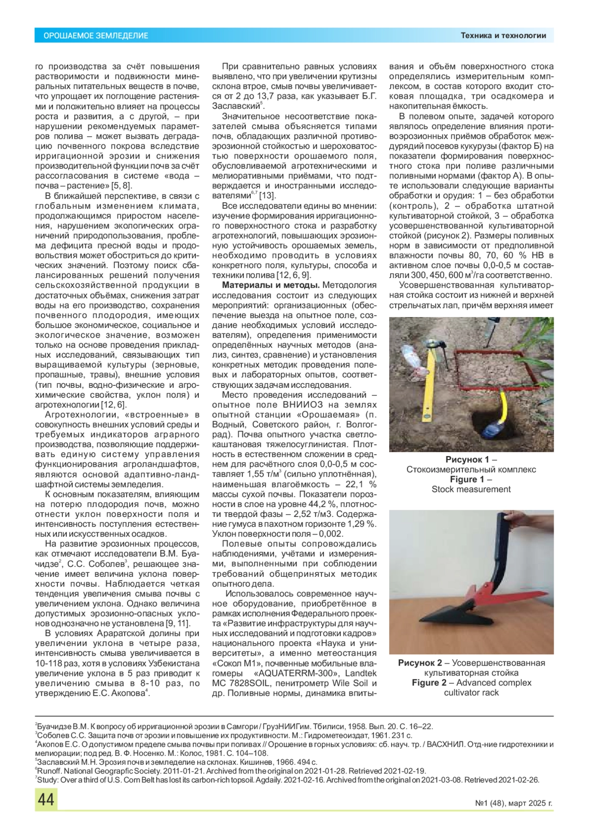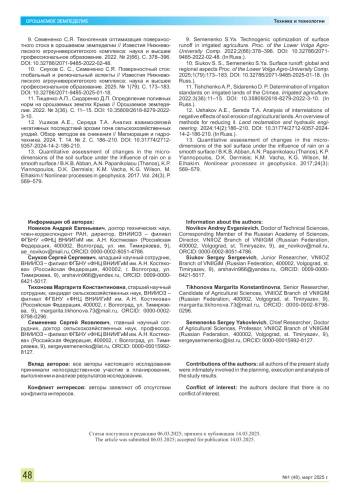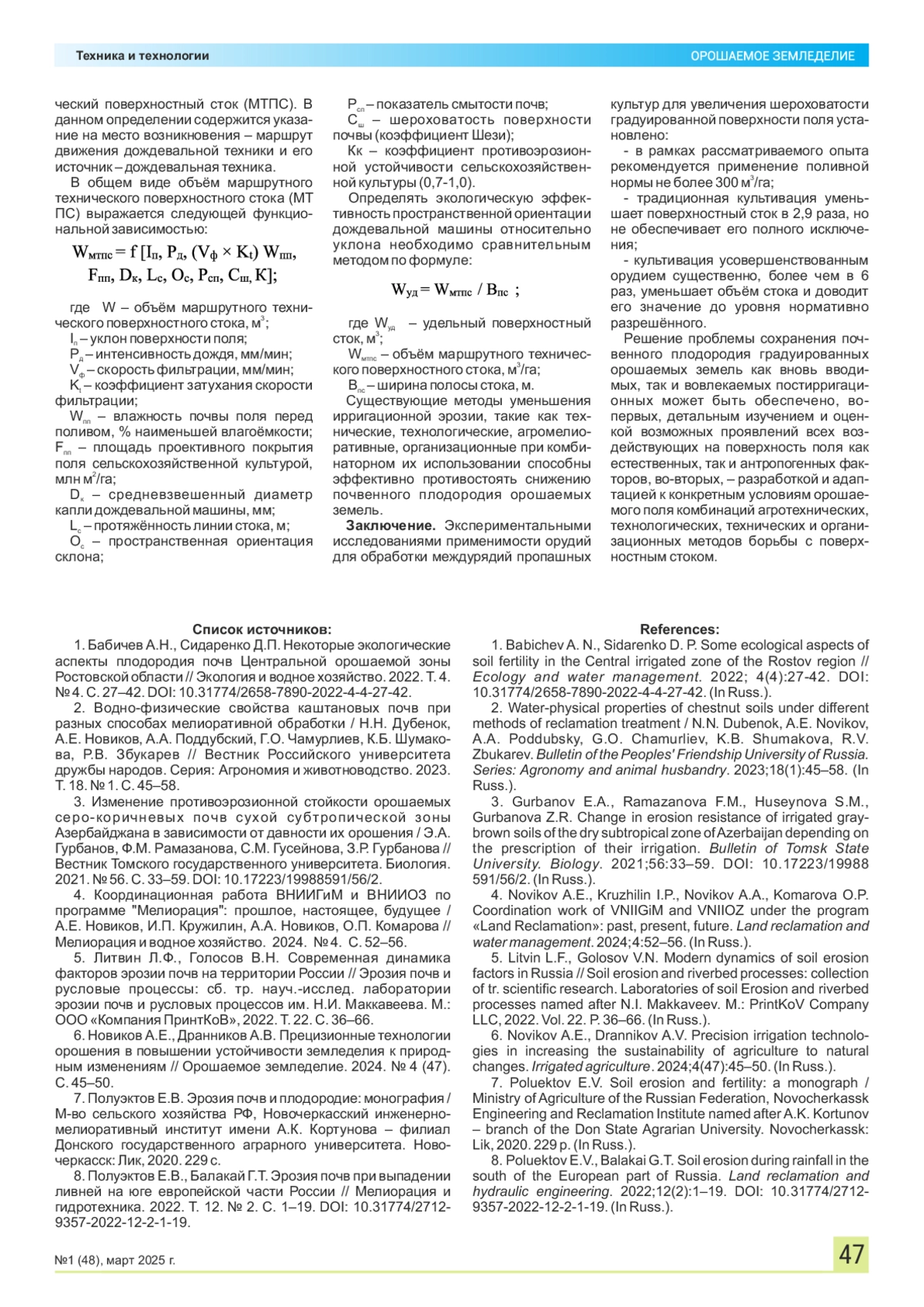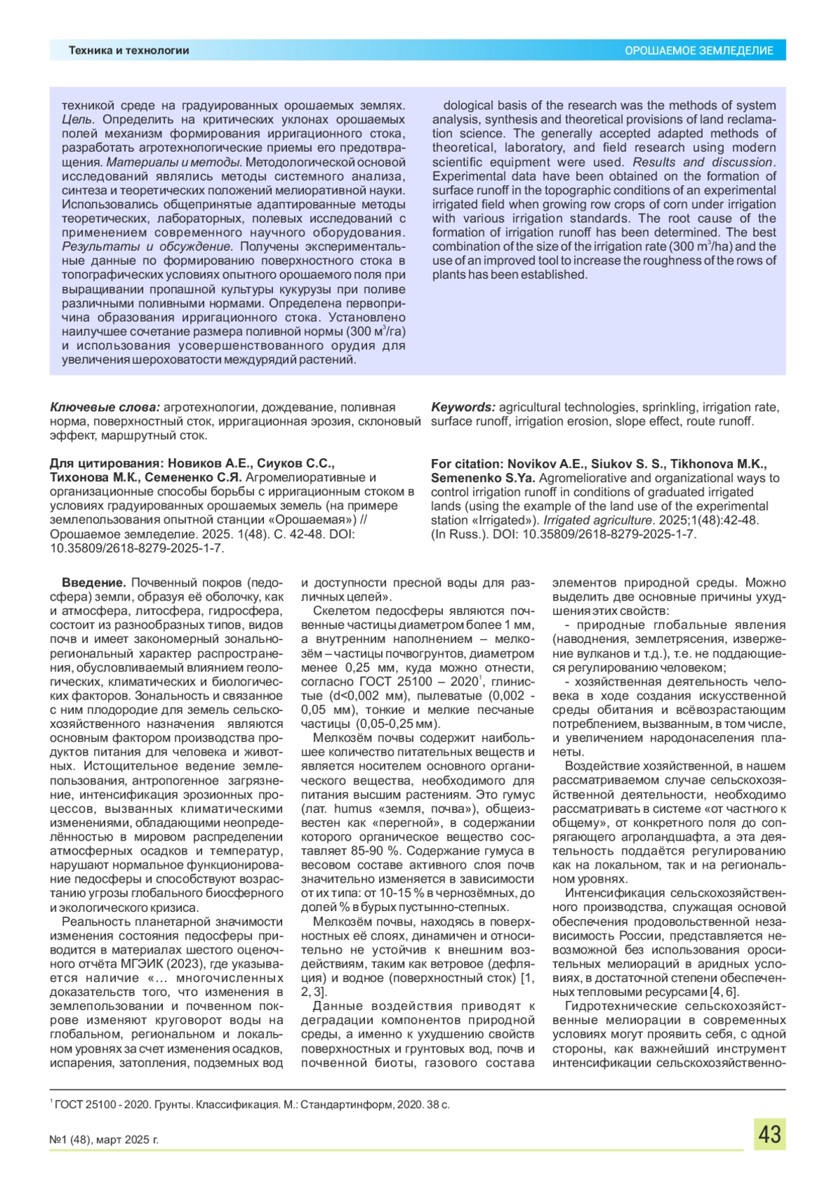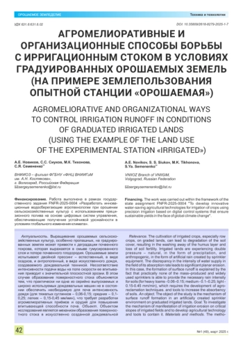 Статья: АГРОМЕЛИОРАТИВНЫЕ И ОРГАНИЗАЦИОННЫЕ СПОСОБЫ БОРЬБЫ С ИРРИГАЦИОННЫМ СТОКОМ В УСЛОВИЯХ ГРАДУИРОВАННЫХ ОРОШАЕМЫХ ЗЕМЕЛЬ (НА ПРИМЕРЕ ЗЕМЛЕПОЛЬЗОВАНИЯ ОПЫТНОЙ СТАНЦИИ «ОРОШАЕМАЯ») (2025)
