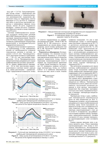 Актуальность исследований определяется необходимостью преодоления сдерживающего фактора развития промышленного производства земляники в Нижнем Поволжье, заключающегося в перегреве корнесодержащего слоя почвы в пиковые периоды температурной напряженности и интенсивного солнечного излучения, которые характерны для климата региона. Цель исследований сводилась к разработке технологии регулирования температурного фактора в посадках садовой земляники при возделывании ее в промышленной культуре с использованием систем комбинированного орошения. Рабочей гипотезой исследований является предположение, что использование дождевального яруса системы комбинированного орошения для смачивания поверхности почвы обеспечивает снижение уровня перегрева корнесодержащего слоя и компенсирует негативное действие фактора при закладке и эксплуатации плантаций земляники. Результаты трехлетних полевых исследований подтверждают значимость фактора перегрева верхнего, корнесодержащего слоя почвы, когда набранная температура превышает порог экологической валентности земляники (34,0 0С). Опыты показали возможность нагрева верхнего слоя почвы в пиковые по температурной напряженности периоды мая до 35,1 0С, июня – до 38,5 0С и июля – до 41,4 0С. Проведение поливов с использованием дождевального яруса системы комбинированного орошения для смачивания приповерхностного (0,02 м) слоя почвы, сериями, после полного испарения влаги или с получасовой задержкой, снижает пиковую температуру корнесодержащего слоя до 28,8-33,8 0С. В результате статистически значимо сокращается доля выпадов растений земляники, кумулятивные оценки которых для посадок первого года плодоношения снижались с 18,1 % до 6,7-7,2 %. Урожайность в посадках земляники первого года плодоношения возрастала с 18,1 т/га (на контроле) до 22,2- 22,5 т/га.