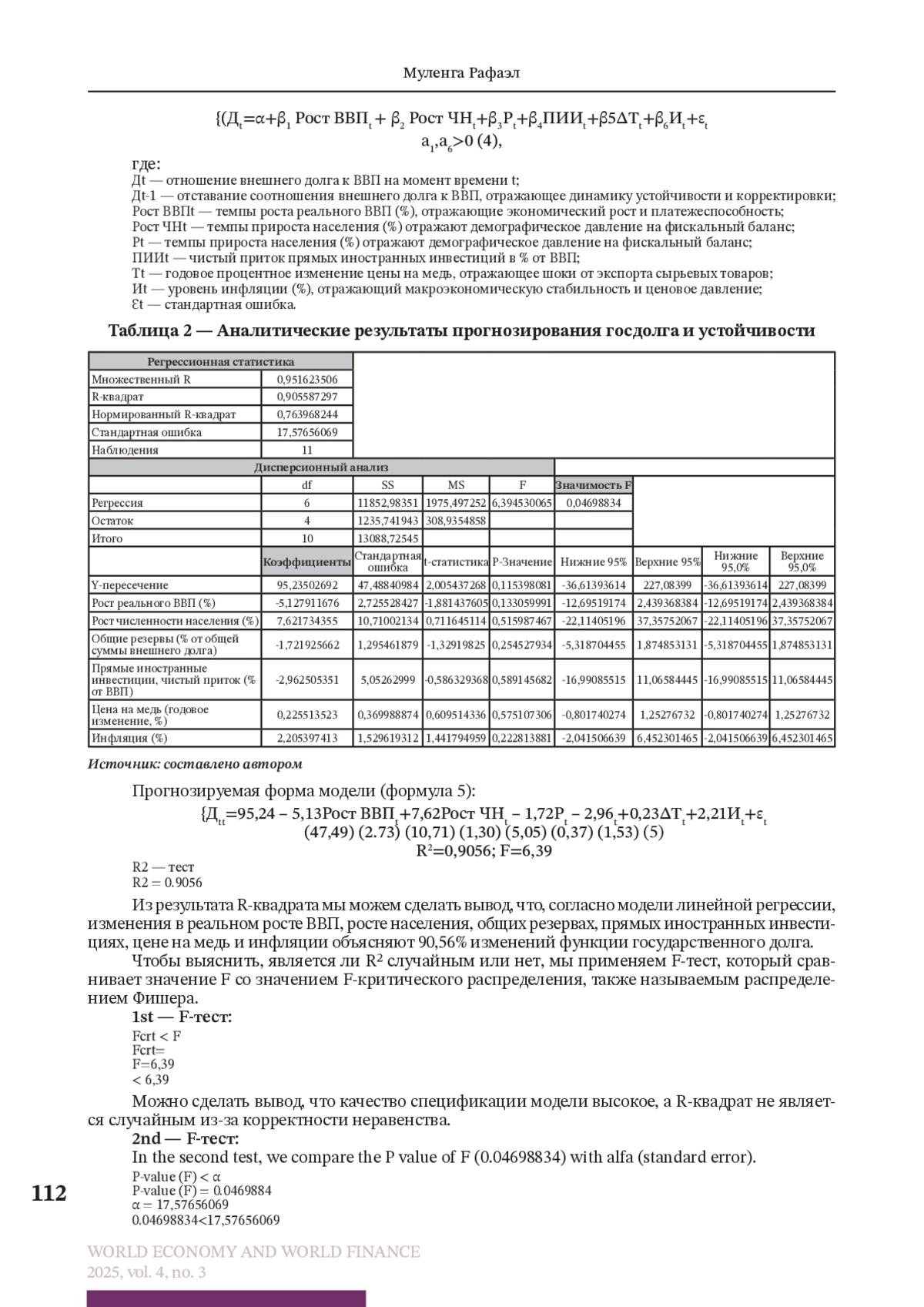 5. Chikalipah S. Sovereign debt and growth in Zambia: determining the tipping point. Social Sciences & Humanities Open, 2021, vol. 4, no. 1, pp. 100188.