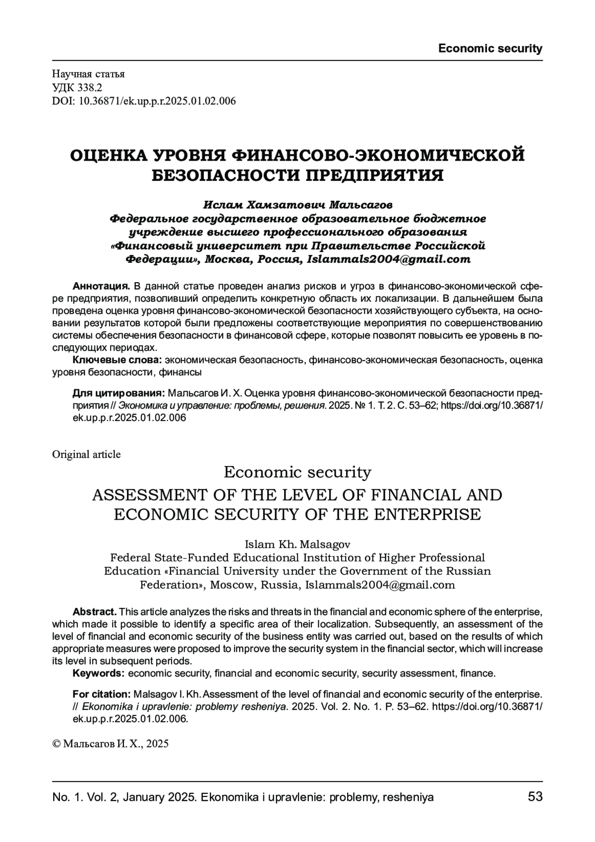 9. Чернобривец А. А. Подходы к оценке экономической безопасности предприятия / А. А. Чернобривец // Санкт-П етербургский научный вестник. 2021. № 1 (10). 11 с.