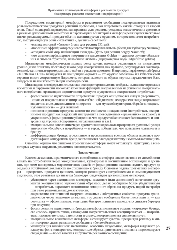 10. Köksal F.N. Metaphoric representation and aesthetic in advertising // Mind and Matter-Challenges and Opportunities in Cognitive Semiotics and Aesthetics. IntechOpen, 2022.