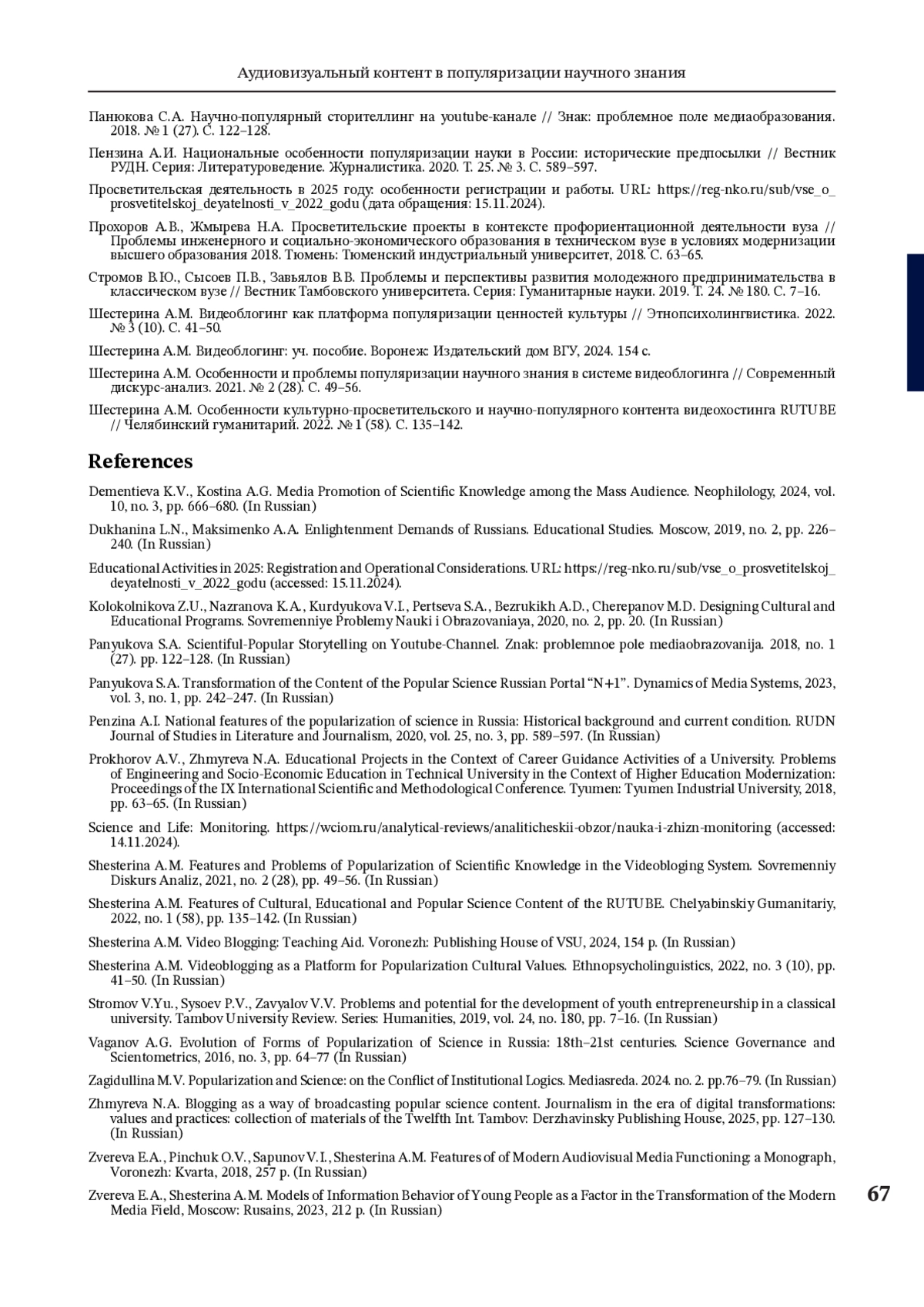 Статья: Аудиовизуальный контент в популяризации научного знания (2025)