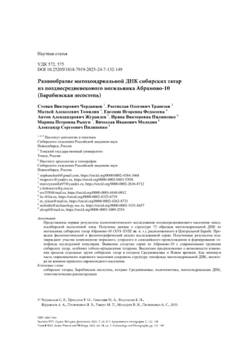 Статья: Разнообразие митохондриальной ДНК сибирских татар из позднесредневекового могильника Абрамово-10 (Барабинская лесостепь) (2025)