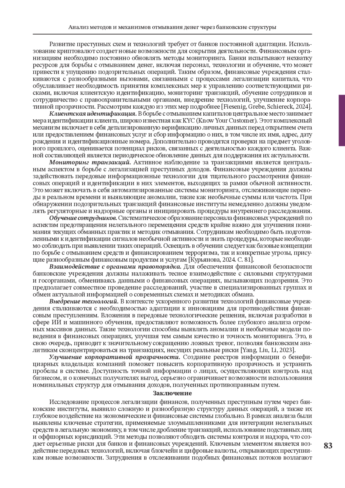 Статья: АНАЛИЗ МЕТОДОВ И МЕХАНИЗМОВ ОТМЫВАНИЯ ДЕНЕГ ЧЕРЕЗ БАНКОВСКИЕ СТРУКТУРЫ (2025)