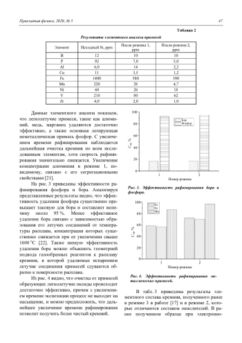В работе продемонстрированы возможности окислительного плазмохимического рафинирования металлургического кремния. Показано, что при использовании электроннопучкового рафинирования удалось снизить концентрацию основных примесей.