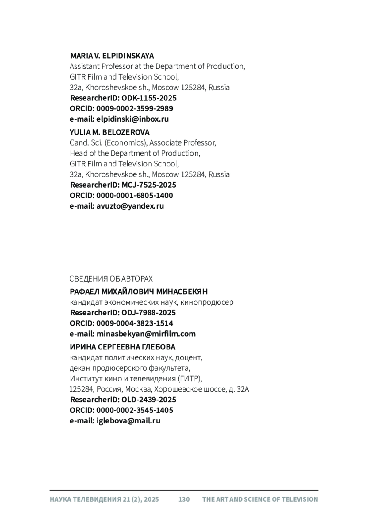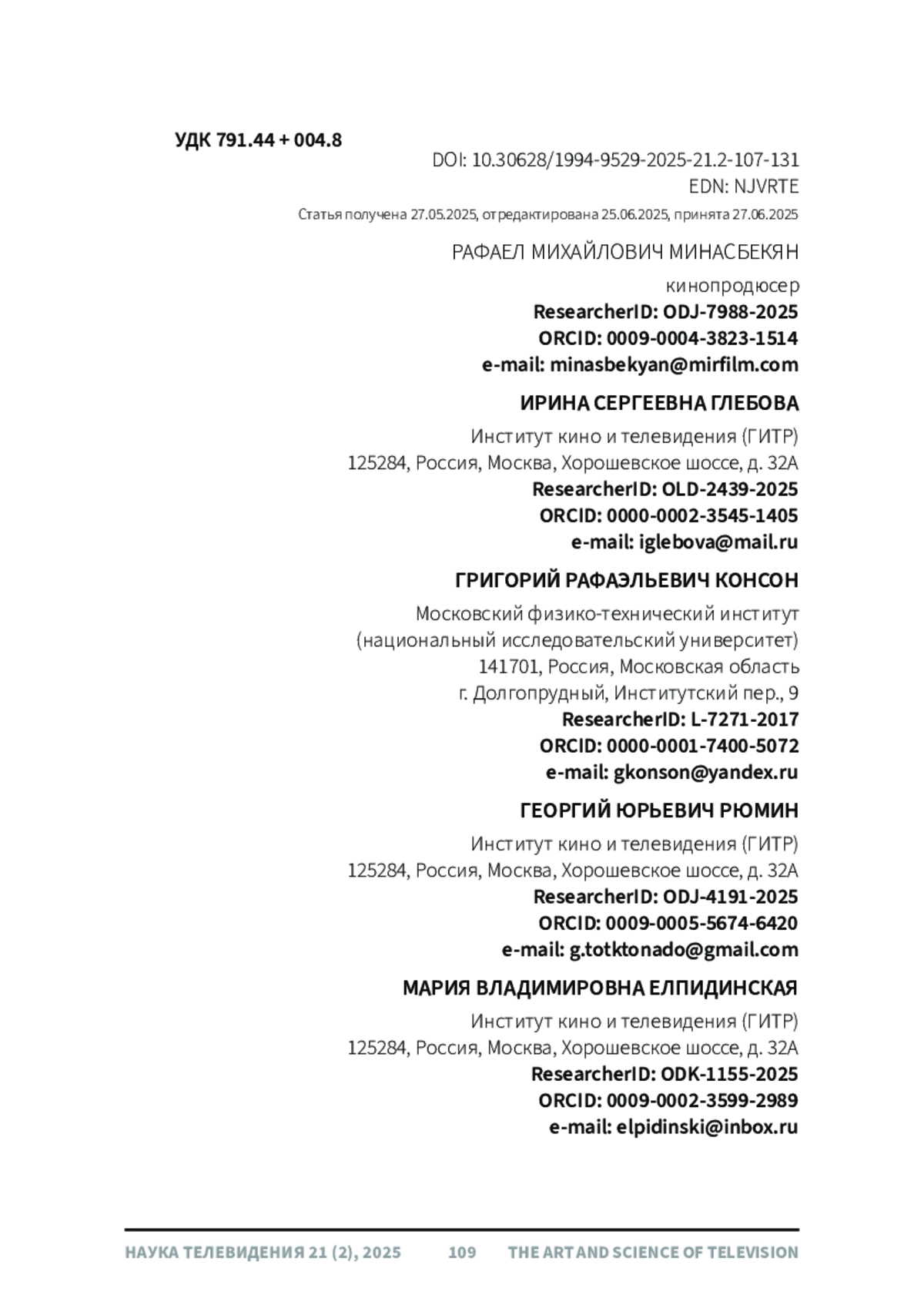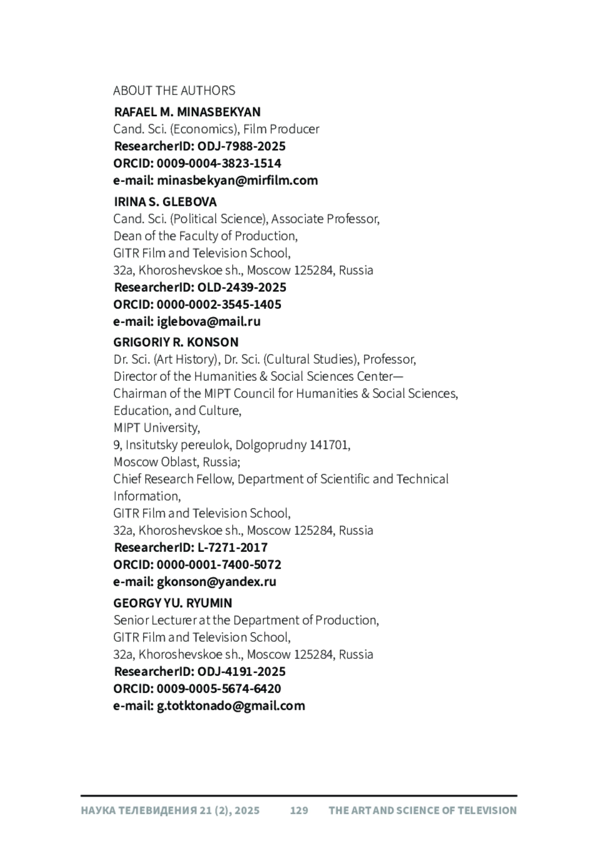 The authors interviewed Rafael Minasbekyan—a producer, screenwriter, director, and executive leader of several organizations pivotal to Russia’s media landscape. Previously a CEO of GPM KIT (Gazprom-Media’s Cinema. Internet. Television Group), a subsidiary of Gazprom Media, the largest media holding in Russia and Eastern Europe, he now heads the film company Mirfilm.1 This interview explores film production through the lens of artificial intelligence versus artistic creativity, examining its societal mission while considering consumer rights and freedoms.